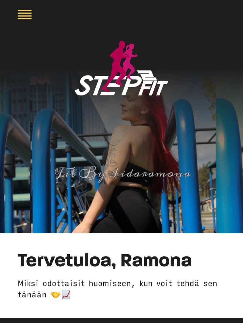 - Step2fit sovellus jonka avulla pystyt pitämään päiväkirjaa, seuraat tuloksia ja näet kaikki valmennuksen ohjelmat samasta paikasta